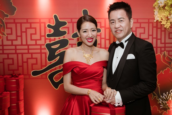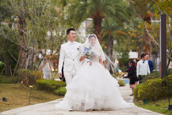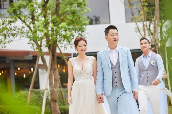 ▲晚宴當然是隆重且正式的,就用最時尚有型的黑西裝黑褲,搭配黑色小背心、黑色領結、白襯衫,與我的白紗、紅禮服、甚至第一支舞的粉橘澎裙搭配都非常適合!